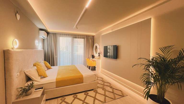 Die Zimmer im Mamaia Moments Villa, Mamaia Nord sind geräumig und bieten einen komfortablen Sitzbereich mit einem Flachbild-TV. Das private Badezimmer ist gut ausgestattet mit kostenfreien Pflegeprodukten, einem Haartrockner und einer Dusche. Genießen Sie den Gartenblick und entspannen Sie sich in Ihrem gemütlichen Zimmer. WLAN ist in allen Bereichen des Bed & Breakfasts kostenlos verfügbar.