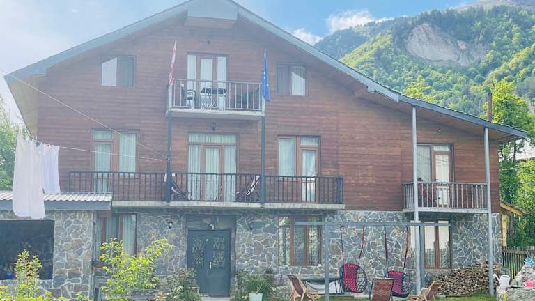 Das Manana's Guesthouse in Mestia bietet haustierfreundliche Unterkünfte mit kostenfreiem WLAN. Die Pension ist ideal für alle, die die Natur und die Skimöglichkeiten der Umgebung genießen möchten. Mit kostenfreien Privatparkplätzen, einem Fahrradverleih und einem Mietwagenservice bietet die Pension auch praktische Annehmlichkeiten für einen unbeschwerten Aufenthalt.