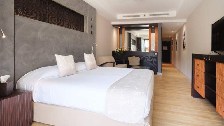 Die Zimmer im Te Moana Tahiti Resort sind im traditionellen polynesischen Stil eingerichtet und bieten modernen Komfort. Sie sind mit Klimaanlage, Flachbild-Kabel-TV, DVD-Player und einer Küchenzeile ausgestattet. Die meisten Zimmer bieten einen schönen Blick auf den Garten oder die Bucht.