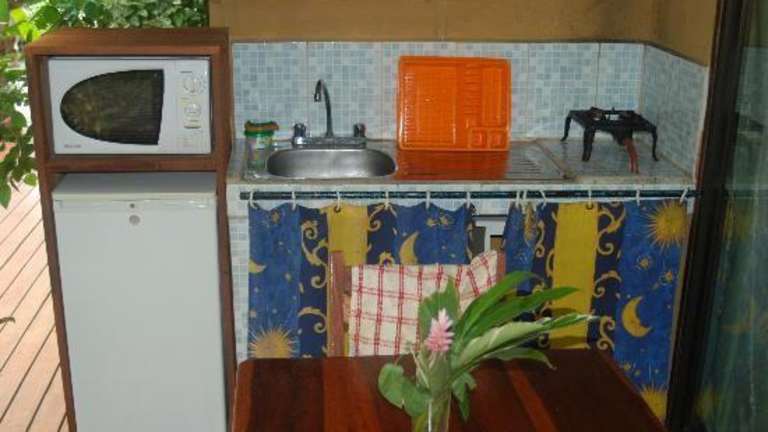 Charmant petit hotel, situé à Puerto Viejo, à 197 m de la plage et 250m du village. Ce petit hotel comprends trois apparts complets avec cuisine complète, salle de bain avec douche. Notre site est composé d'un joli patio entouré de fleurs et de verdure. A l'arrière c'est une jungle (rain forest)qui a l'occasion nous pouvons voir des singes, des paresseux , des perroquets et que dire de nos jolis papillons, de différentes sortes de grenouilles. Aussi nous possedons une piscine avec jacuzzi, et ce tout en adimirant la nature. Idéal pour le repos, mais à proximité de tout, épicerie, et très grands choix de restaurants. Nous avons aussi la possibilité de location de byciclettes.