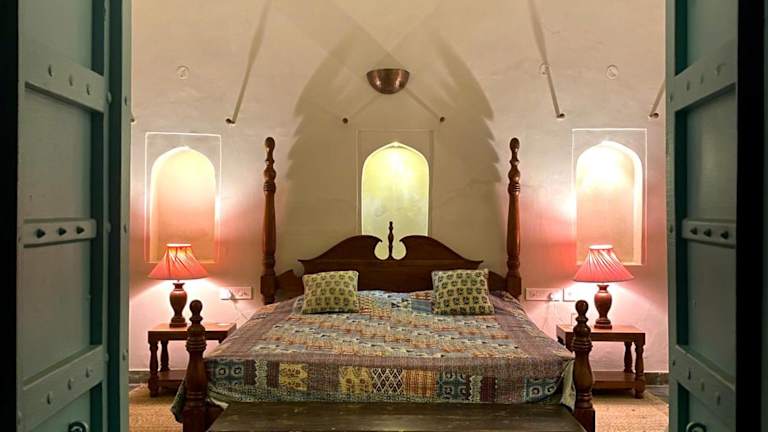 Die klimatisierten Zimmer im Mandawa Kothi sind komfortabel und bieten kostenfreies WLAN. Hier können Sie sich nach einem ereignisreichen Tag entspannen.