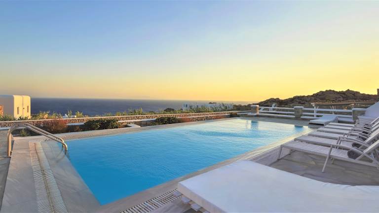 Die Mando Pool Villas w Sea Views - Five Bedrooms liegen 400 m vom Super Paradise Beach entfernt. Zum Flughafen Mykonos sind es 3 km. Die malerische Altstadt von Mykonos sowie der Hafen sind nach 1,6 km zu erreichen. In der Nähe finden sich ein Restaurant, eine Café-Bar und ein Supermarkt.