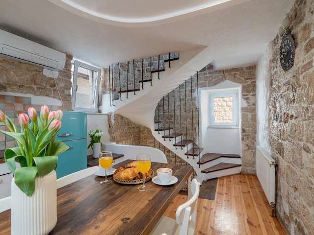 Die Unterkunft Manero befindet sich direkt im Zentrum von Trogir, etwa 1,2 km vom öffentlichen Strand entfernt. Der Flughafen Split ist 4 km entfernt, während verschiedene Sehenswürdigkeiten wie der Archäologische Park Salona und das Mladezi Park-Stadion in 24 km bzw. 27 km Entfernung liegen.