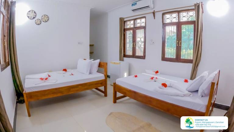 Die Zimmer in der Mangapwani Beach Villa sind komfortabel eingerichtet und bieten alles, was Sie für einen angenehmen Aufenthalt benötigen. Jedes Zimmer verfügt über eine Terrasse mit Blick auf den Garten, ein eigenes Bad mit Dusche und kostenlosen Pflegeprodukten sowie Meerblick. Bettwäsche und Handtücher werden ebenfalls bereitgestellt, damit Sie sich wie zu Hause fühlen können.