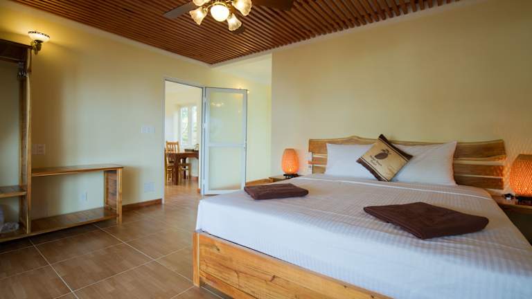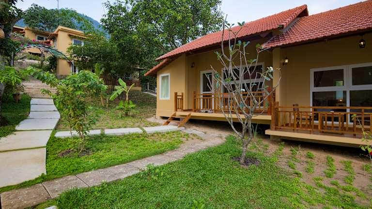 Das Mango Beach Resort befindet sich in Hàm Ninh, einem malerischen Ort auf der Insel Phú Quốc. Es liegt etwa 23 km von Dương Đông entfernt und bietet eine ruhige und entspannte Umgebung. Das Resort liegt direkt am Strand und bietet Ihnen einen privaten Strandbereich, an dem Sie die Sonne und das Meer genießen können. In der Nähe finden Sie auch zahlreiche lokale Restaurants und Geschäfte. Der internationale Flughafen Phú Quốc ist nur 13 km entfernt, so dass Sie bequem an- und abreisen können.