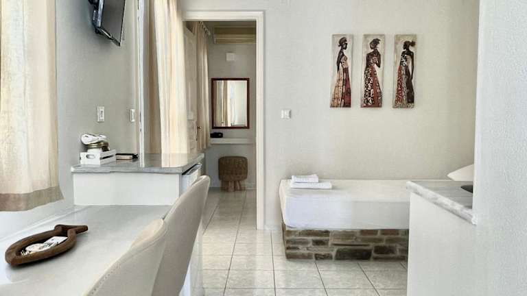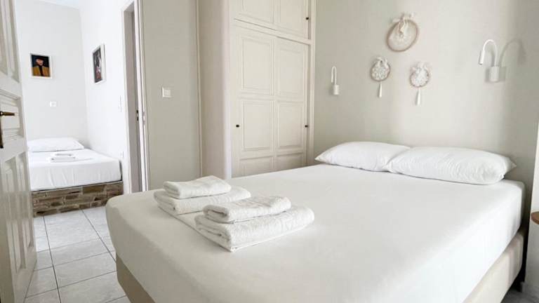 Hervorragende Lage in Tinos, in einer ruhigen Seitengasse. Mitten in der Stadt, wenige Meter von den Restaurants, Cafès und dem Hafen entfernt, trotzdem ruhig.