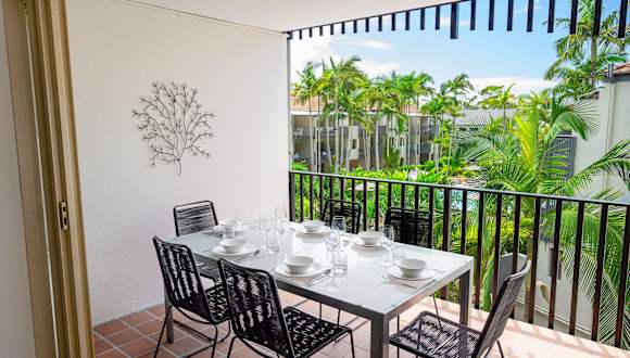 Die klimatisierten Apartments im Mantra French Quarter Noosa Resort sind geräumig und hell. Sie sind in blauen und weißen Farbtönen eingerichtet und verfügen über raumhohe Fenster, die viel Licht hereinlassen. Jedes Apartment bietet eine gut ausgestattete Küche, Wäschemöglichkeiten und einen Balkon oder eine Terrasse im Freien.