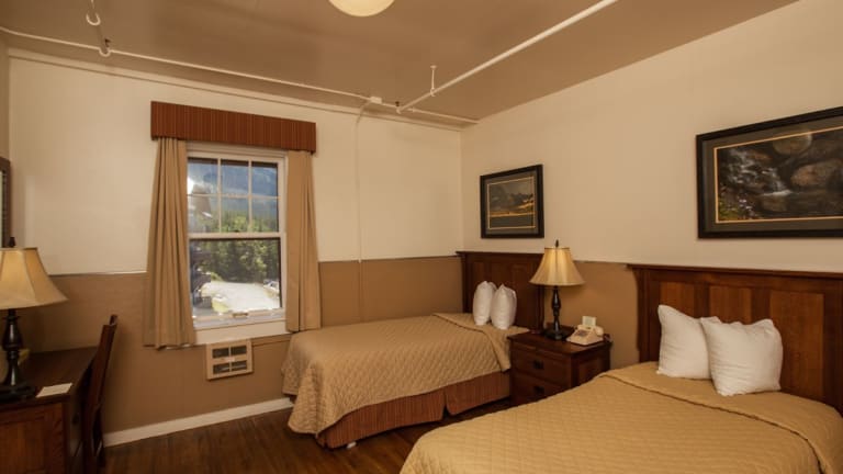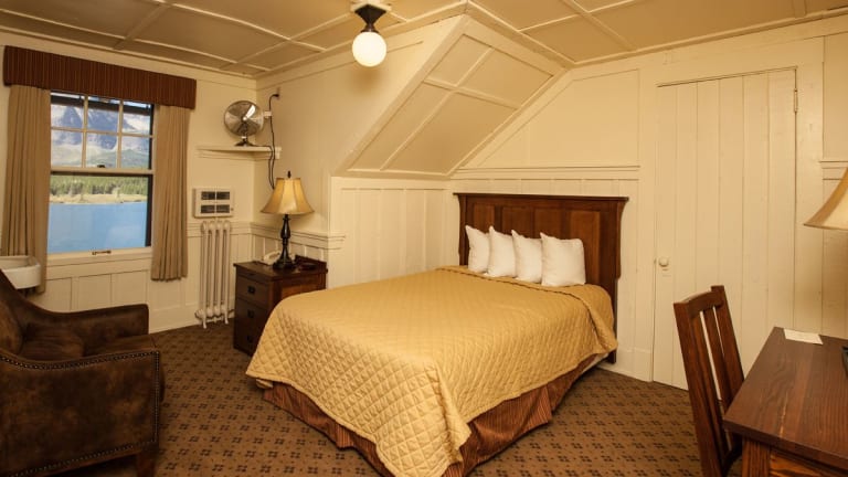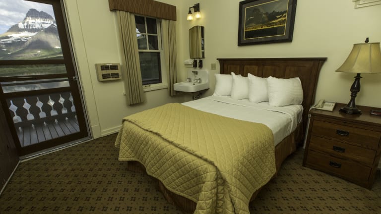 Die 213 Zimmer des Many Glacier Hotels sind komfortabel eingerichtet und verfügen über ein Doppelbett. Zur Ausstattung gehören ein Telefon und WLAN. Rollstuhlgerechte Zimmer sind auf Anfrage verfügbar, um allen Gästen einen angenehmen Aufenthalt zu ermöglichen.