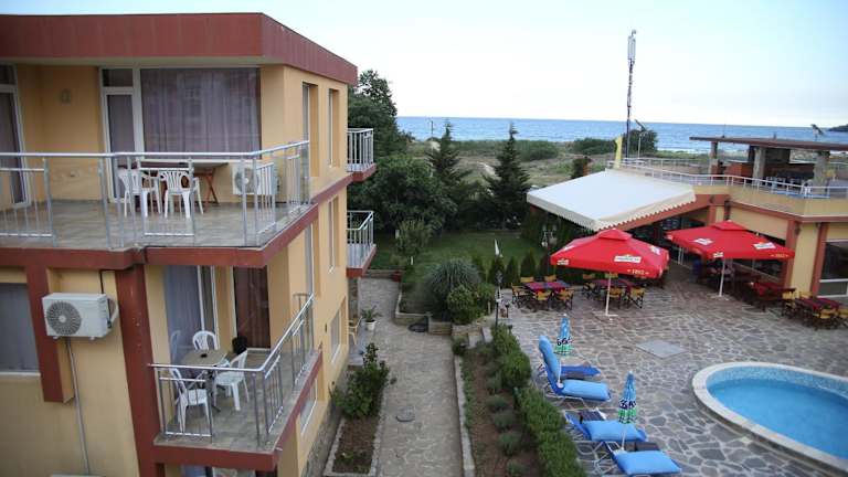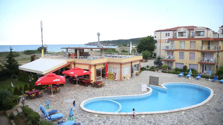 Verbringen Sie einen entspannten Aufenthalt im Mappy Holidays Aparthotel, das sich direkt am Sandstrand von Kavatsi Camping befindet. Genießen Sie den Außenpool und das hoteleigene Restaurant mit bulgarischer Küche. Die klimatisierten Zimmer bieten allen Komfort, den Sie benötigen, und kostenfreies WLAN ist ebenfalls verfügbar. Das freundliche Personal an der Rezeption steht Ihnen zur Verfügung, um Ihnen bei der Organisation von Aktivitäten wie Bootstouren, Angeln und der Buchung eines Mietwagens zu helfen. Entdecken Sie die umliegenden Sehenswürdigkeiten wie den Aqua Park Primorsko und das Naturschutzgebiet Ropotamo.