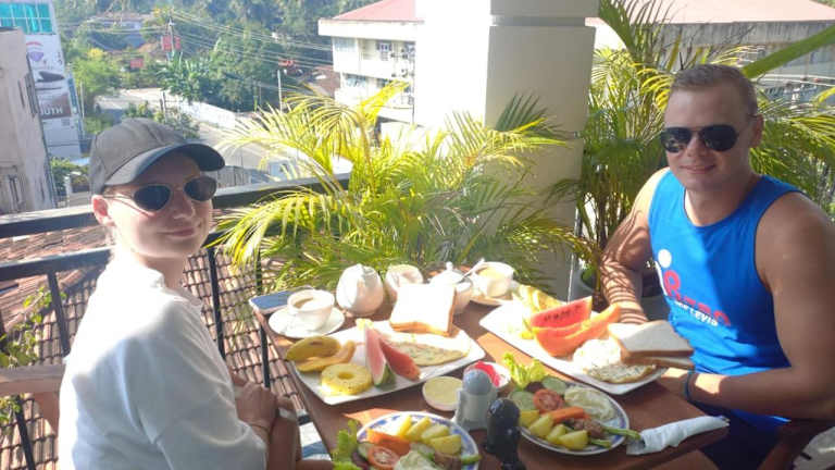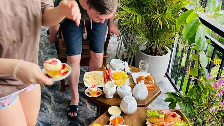Beim Frühstück stehen verschiedene Optionen zur Auswahl, einschließlich amerikanischer, asiatischer und vegetarischer Gerichte.