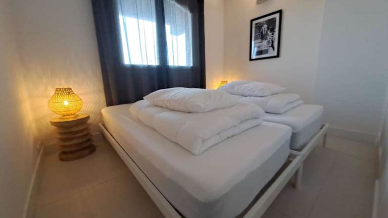 Die Ferienwohnung verfügt über drei Schlafzimmer, ein Wohnzimmer und eine voll ausgestattete Küche mit Kühlschrank und Kaffeemaschine. Es gibt zwei Badezimmer, die mit einer Dusche und einem Haartrockner ausgestattet sind. Für den Komfort der Gäste können Handtücher und Bettwäsche gegen Aufpreis bereitgestellt werden. Die Unterkunft ist klimatisiert und bietet Nichtraucherzimmer.