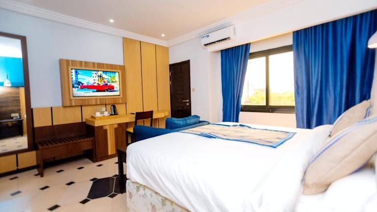 Jedes Zimmer in der Unterkunft ist mit Klimaanlage, einem Schreibtisch, einem Flachbild-TV sowie einem eigenen Badezimmer ausgestattet. Darüber hinaus stehen den Gästen Bettwäsche, Handtücher und ein Balkon mit Stadtblick zur Verfügung. Auch ein Kühlschrank ist in den Gästezimmern vorhanden.