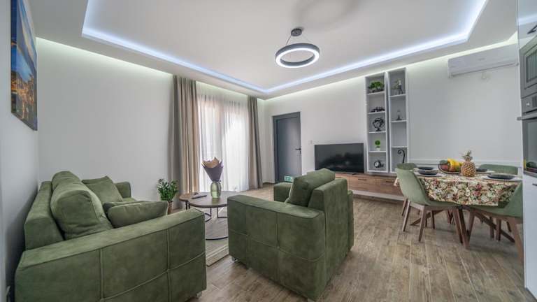 Die Apartments verfügen über eine Veranda oder einen Patio mit Bergblick sowie über einen Sitzbereich. Jedes Apartment ist mit einem Satelliten Flachbild-TV und einer voll ausgestatteten Küche mit Kühlschrank und Ofen ausgestattet. Die Zimmer haben ein eigenes Badezimmer mit Dusche und kostenlosen Pflegeprodukten. Ein zusätzliches eigenes Badezimmer mit Whirlpool und Haartrockner ist ebenfalls verfügbar.