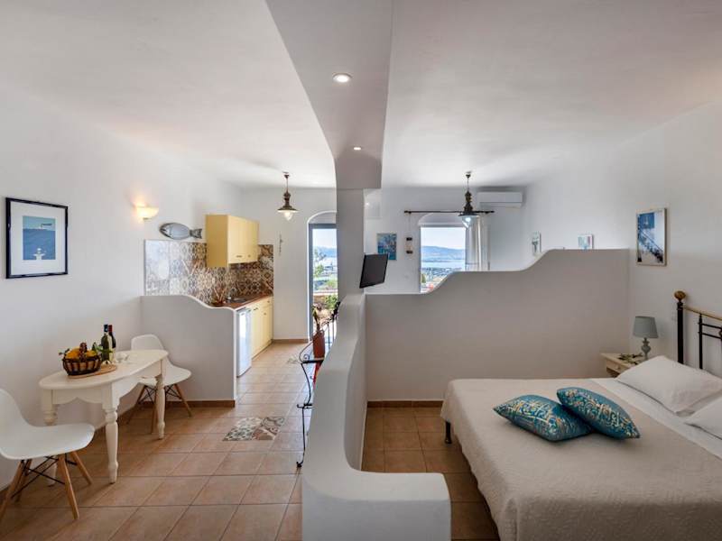 Die Margarita Countryside Studios sind klimatisiert und traditionell eingerichtet. Jedes Studio verfügt über eine Küchenzeile mit Kochplatten, einem Minikühlschrank, einer Kaffeemaschine und einem Toaster. Es gibt auch einen Esstisch. Zur Ausstattung gehören ein Flachbild-Sat-TV, kostenfreie Pflegeprodukte und ein Haartrockner. Von der großen Terrasse aus können Sie den Blick auf die Ägäis genießen.
