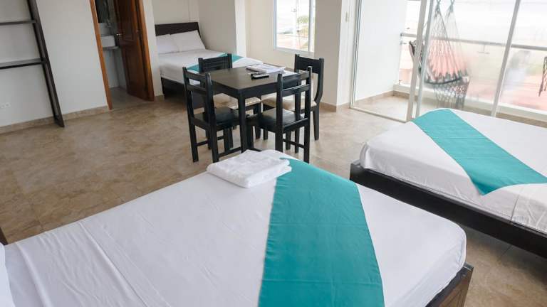 Das Margaritas Palace Hotel in Canoa ist eine exklusive 5-Sterne-Unterkunft mit atemberaubendem Strandblick. Das Hotel bietet seinen Gästen einen erstklassigen Service und zahlreiche Annehmlichkeiten wie eine Terrasse, kostenfreies WLAN und kostenlose Privatparkplätze. Entspannen Sie in den klimatisierten Zimmern mit eigenem Bad und Flachbild-TV. Einige Zimmer verfügen über einen Balkon, von dem aus Sie die Aussicht auf das Meer genießen können. Starten Sie jeden Morgen mit einem köstlichen kontinentalen Frühstück in den Tag. Das Hotel bietet zudem einen Innenpool, eine Sauna und einen Whirlpool, in denen Sie sich verwöhnen lassen können. Das freundliche und hilfsbereite Personal spricht Englisch und Spanisch und steht Ihnen rund um die Uhr zur Verfügung. Der wunderschöne Strand von Canoa ist nur wenige Schritte vom Hotel entfernt und lädt zu erholsamen Stunden am Meer ein. Der internationale Flughafen Eloy Alfaro ist etwa 104 km entfernt, und das Hotel bietet einen kostenpflichtigen Flughafentransfer an.