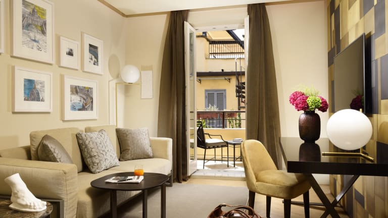 Das Hotel Margutta 19 - Small Luxury Hotels of the World bietet eine ideale Lage im Zentrum von Rom, nur wenige Gehminuten von bekannten Sehenswürdigkeiten wie der Spanischen Treppe entfernt. Die eleganten Zimmer sind mit modernen Annehmlichkeiten ausgestattet und bieten einen komfortablen Rückzugsort nach einem ereignisreichen Tag in der Stadt. Das hoteleigene Restaurant verwöhnt Sie mit italienischen Gourmet-Tapas und einem köstlichen amerikanischen Frühstück. Genießen Sie den Blick auf den Gemeinschaftsgarten von der Sonnenterrasse aus und erkunden Sie die umliegenden Attraktionen wie die Villa Borghese und die Piazza del Popolo.