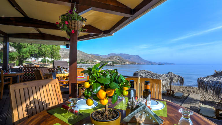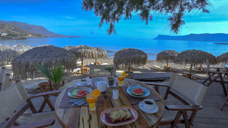 Our restaurant, which is right on the beach, and serves Cretan and Mediterranean cuisine, is open daily from 12 noon until late at night and offers a variety of exquisite traditional dishes with pure, local ingredients, fresh fish and seafood that are truly worth a taste. In its idyllic environment you will experience a delicious experience that will be unforgettable.