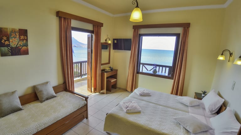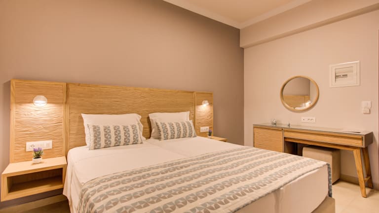 The hotel consists of modern rooms, spacious studios and apartments, most of which have unlimited sea views, and are fully equipped to meet all the needs of our guests. The beautifully landscaped, ideal for children, sandy beach right in front of our hotel offers endless hours of calmness and relaxation.