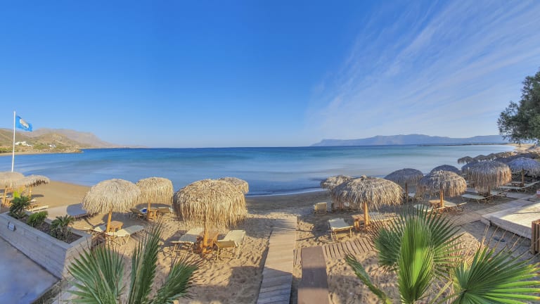 Maria Beach Hotel is located on a lovely sandy beach, in the middle of the enchanting bay of Kissamos, 40km west of Chania Town. The combination of the Cretan mountains, the local vegetation and the magnificent blue color and the golden sand of the sea create an idyllic environment that exudes serenity and tranquility. In our modern rooms, spacious studios and apartments, which are fully equipped to meet the needs of our guests, you will be able to spend your carefree and relaxing holidays. The beautifully landscaped, ideal for children, sandy beach right in front of our hotel offers endless hours of calmness and relaxation. At the start of the day, our rich breakfast, with a variety of savory and sweet flavors, fresh fruit and juices, with pure local ingredients, is served in a buffet on a beautiful terrace overlooking the sea”, which is also our hotel’s Café. Our restaurant, right on the beach, in an idyllic landscape, with Cretan and Mediterranean cuisine, offers delicious traditional dishes with pure Cretan ingredients, pure virgin olive oil, fresh fish and seafood that will enthuse you. It is open daily from noon until late at night. To make your journey easier and hassle-free, our hotel provides taxi services. The location of our hotel is ideal for your sightseeing trips to beautiful natural sites and world famous beaches of Chania. We are waiting for you at Maria Beach! Here people still smile and treat the visitors with appreciation and with a keen sense of Cretan hospitality!