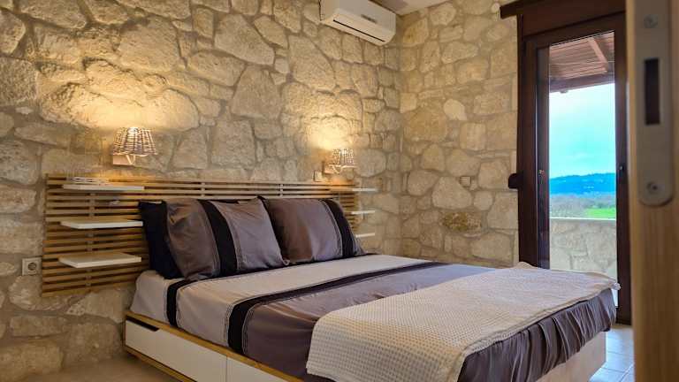 Maria's stone Heaven Retreat bietet Übernachtungsmöglichkeiten mit Terrassen und Balkonen, die einen schönen Blick auf die Berge bieten. Die Villa ist klimatisiert und bietet Platz für eine angenehme und komfortable Erholung.