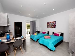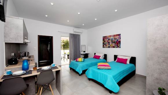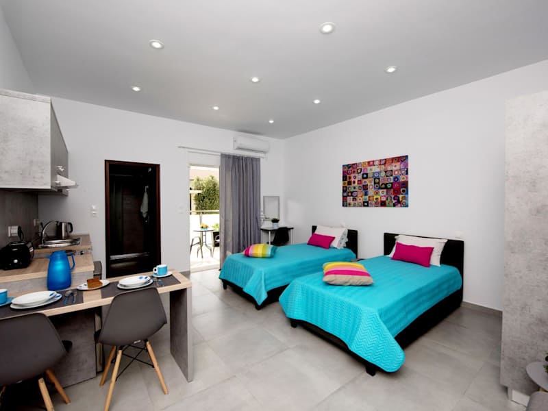 Die Apartments im Maria Studios & Apartments sind komfortabel und bieten alles, was Sie für einen angenehmen Aufenthalt benötigen. Jedes Apartment ist klimatisiert und verfügt über einen Balkon, auf dem Sie die frische Luft und die Sonne genießen können. In den Apartments finden Sie auch eine voll ausgestattete Küchenzeile mit Kochmöglichkeiten, einer Mikrowelle und einem Kühlschrank. Das eigene Badezimmer ist mit einer Dusche und einem Haartrockner ausgestattet. Kabel-TV ist ebenfalls vorhanden, so dass Sie Ihre Lieblingssendungen nicht verpassen müssen.