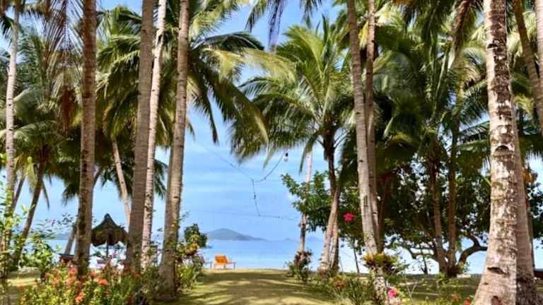 Das Mariejoy Haven Beach Resort befindet sich am Strand Small Naonao in Port Barton (San Vicente). Die Unterkunft ist nur mit einem gemieteten Privatboot oder über eine unbefestigte Straße erreichbar, die eine 20-minütige Fahrt vom Strand Port Barton entfernt ist.