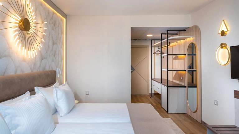 Das Hotel Marieta Palace verfügt über 104 Zimmer, die den Gästen Komfort und Entspannung bieten. Die Zimmer sind mit Annehmlichkeiten wie Klimaanlage, Safe, Kaffee-/Teezubereiter, Minibar und kostenlosem WLAN ausgestattet. Jedes Zimmer verfügt außerdem über ein eigenes Badezimmer mit Badewanne oder Dusche, Slippern und einem Haartrockner. Ein Balkon oder eine Terrasse bietet einen schönen Ausblick auf die Umgebung.
