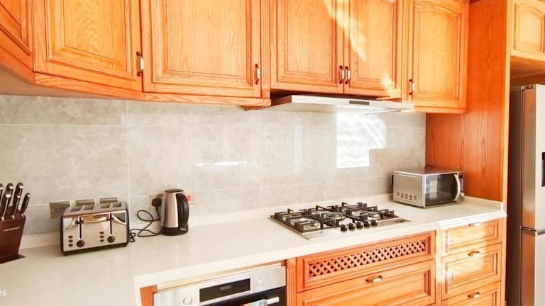 Die Villa verfügt über 4 geräumige Schlafzimmer, die für einen erholsamen Schlaf sorgen. Die Küche ist gut ausgestattet mit einem Kühlschrank und einem Backofen, so dass Sie Ihre eigenen Mahlzeiten zubereiten können. Der Flachbild-TV und der gemütliche Sitzbereich bieten Unterhaltungsmöglichkeiten und einen Ort zum Entspannen. Die 3 Badezimmer sind mit Duschen ausgestattet und Handtücher und Bettwäsche werden gestellt.