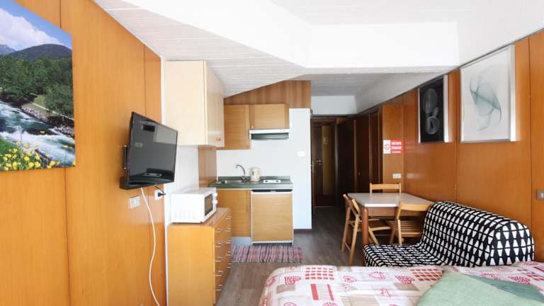 Die Apartments im Hotel Marilleva 1400 Appartamenti Montana sind im alpinen Stil eingerichtet und bieten eine gemütliche Atmosphäre. Jedes Apartment verfügt über einen Wohn-/Essbereich mit einer voll ausgestatteten Küchenzeile, in der Sie Ihre Mahlzeiten selbst zubereiten können. Ein TV und ein Badezimmer mit einer Badewanne oder einer Dusche sind ebenfalls vorhanden. Einige Zimmer erstrecken sich über 2 Ebenen und bieten zusätzlichen Platz. Einige Apartments sind mit Etagenbetten im Wohnzimmer ausgestattet, um zusätzliche Schlafmöglichkeiten zu bieten.