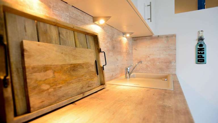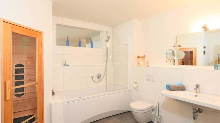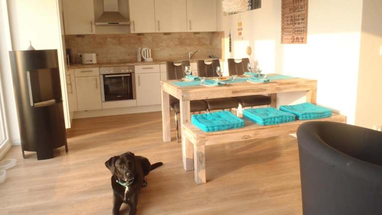 Die Ferienwohnung ist mit einer Küchenzeile ausgestattet, die über einen Kühlschrank, Geschirrspüler, Ofen, Kaffeemaschine und Wasserkocher verfügt. Die Übernachtungsmöglichkeiten bieten kostenloses WLAN und verfügen über einen TV.