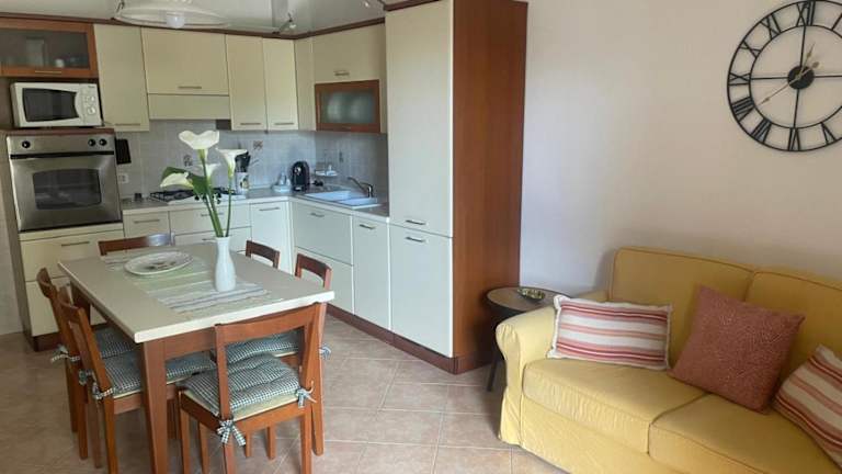 Die Ferienwohnung ist klimatisiert und besteht aus 2 Schlafzimmern, einem Wohnzimmer, einer voll ausgestatteten Küche mit einem Kühlschrank und einer Kaffeemaschine sowie einem Badezimmer mit Bidet und Dusche. Zudem ist ein Flachbild-TV vorhanden.