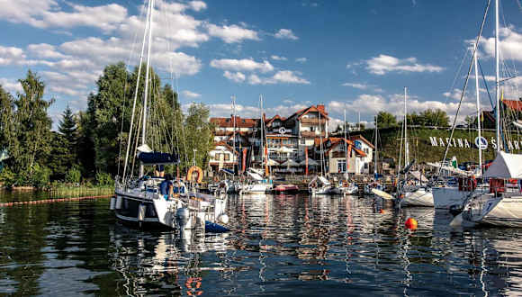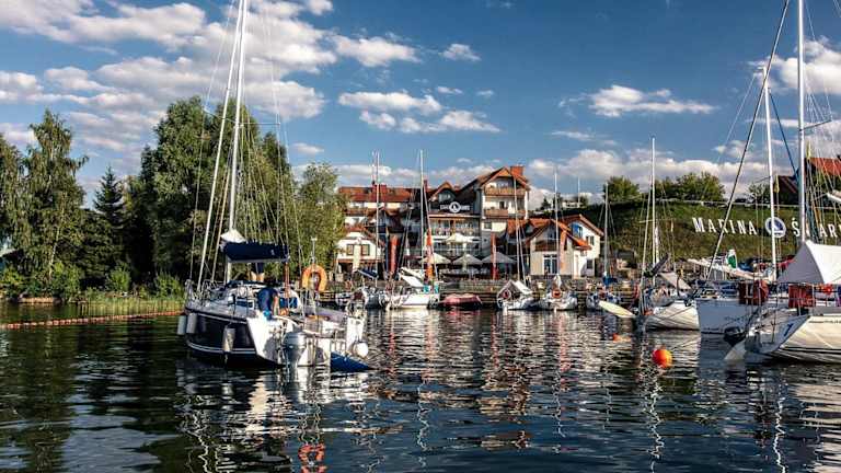 Das Marina Śniardwy Resort liegt in Nowe Guty und ist ca. 27 km vom Golfplatz Talki entfernt. Die Umgebung bietet eine wunderschöne Naturkulisse mit Seen und Wäldern, ideal für Aktivitäten wie Wandern und Angeln. Der nächstgelegene Flughafen ist der Flughafen Olsztyn-Mazury, der etwa 93 km vom Resort entfernt liegt.
