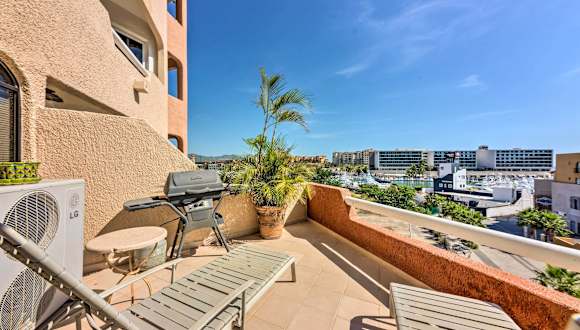 Die Unterkunft Marina View Cabo San Lucas Condo Less Than 1 Mile to Beach bietet einen Blick auf das Meer von einem Balkon aus. Die Ferienwohnung umfasst drei separate Schlafzimmer und verfügt über eine voll ausgestattete Küche. Sie ist klimatisiert und eignet sich für einen angenehmen Aufenthalt.