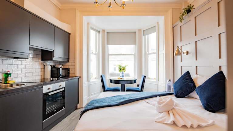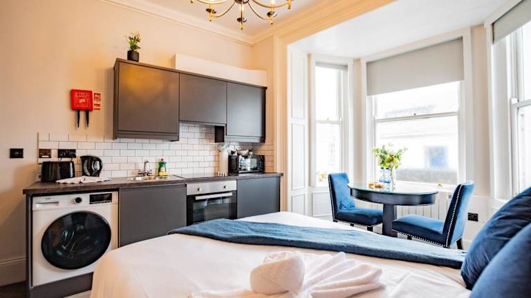 Die Ferienwohnung Marina View Studio ist mit einem Flachbild-TV ausgestattet. In der Küchenzeile stehen ein Kühlschrank, ein Ofen und eine Mikrowelle zur Verfügung. Zu den Annehmlichkeiten der Unterkunft gehören eine Dusche, kostenlose Pflegeprodukte und ein Haartrockner. WLAN ist in der gesamten Unterkunft kostenlos verfügbar. Die Unterkunft ist eine Nichtraucherunterkunft und bietet Heizung sowie eine Gepäckaufbewahrung.