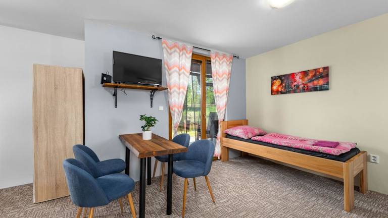 Das Marine Závlahy befindet sich in Hrdějovice, einer ruhigen Gegend in der Nähe von Český Krumlov. Die malerische Stadt Český Krumlov ist nur 26 km entfernt und lockt mit ihrer historischen Altstadt und ihren charmanten Gassen. Das beeindruckende Schloss Hluboká nad Vltavou liegt nur 3 km entfernt und ist ein beliebtes Ausflugsziel. In der Umgebung gibt es auch Möglichkeiten zum Golfspielen und Radfahren. Die Unterkunft bietet kostenfreie Privatparkplätze für die Gäste.