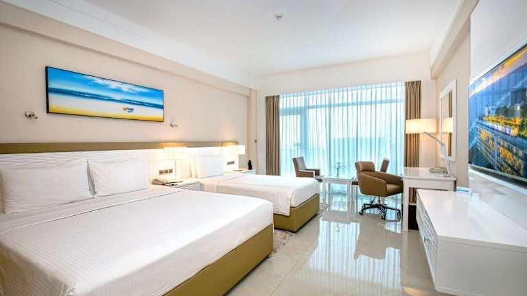 Die Zimmer im Marino Beach Colombo sind klimatisiert und bieten einen komfortablen Rückzugsort nach einem ereignisreichen Tag. Jedes Zimmer verfügt über einen Balkon mit Meerblick, ein eigenes Bad mit Dusche und Badewanne sowie Annehmlichkeiten wie einen Schreibtisch, einen Wasserkocher, eine Minibar, einen Safe und einen Flachbild-TV. WLAN ist in allen Bereichen des Hotels kostenlos verfügbar.