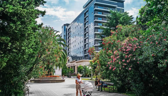 Das City Park Hotel Sochi befindet sich in einer idealen Lage im Herzen von Sotschi. Der Primorsky Strand ist nur wenige Schritte entfernt und der Mayak Strand sowie der Sochi City Beach sind in wenigen Gehminuten erreichbar. Das Hotel bietet auch eine gute Anbindung an öffentliche Verkehrsmittel, so dass Sie bequem die umliegenden Sehenswürdigkeiten erkunden können.