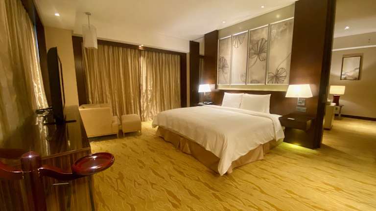 Die Zimmer im Courtyard by Marriott Shanghai Jiading sind geräumig und bieten modernen Komfort. Die Badezimmer sind von Glaswänden umgeben und verfügen über eine Badewanne und eine Dusche. Die Zimmer sind stilvoll eingerichtet und verfügen über Holzböden. Zur Ausstattung gehören ein Flachbild-Sat-TV, ein Kühlschrank mit Minibar und ein Safe. Ein angenehmes Ambiente wird durch die Einbauleuchten und die Verwendung von Holz und Glas geschaffen.