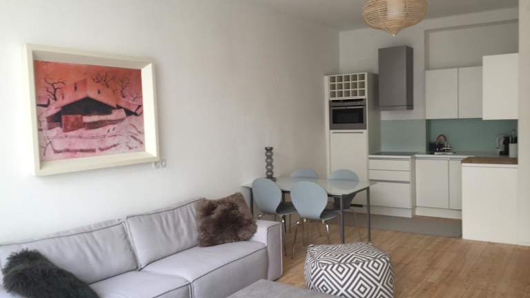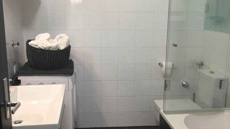Die Ferienwohnung verfügt über zwei Schlafzimmer, eine Küche mit Kühlschrank und Geschirrspüler, einen Flachbild-TV, einen Sitzbereich sowie ein Badezimmer mit Badewanne. Handtücher und Bettwäsche werden bereitgestellt.