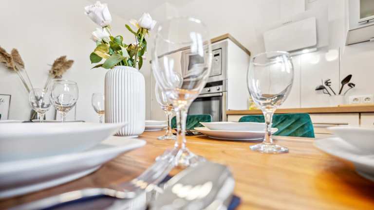 Die Ferienwohnung verfügt über eine voll ausgestattete Küche, die mit einem Kühlschrank und einer Kaffeemaschine ausgestattet ist, um eine selbstständige Verpflegung zu ermöglichen. Es sind keine weiteren Verpflegungsmöglichkeiten aufgeführt.