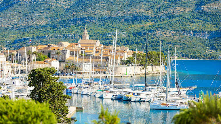 Machen Sie einen kurzen Abstieg zur nächsten „kleinen“, versteckten Kieselstrand, umgeben von Pinien und Zypressen. Für Abenteuer und Aktivitäten gehen Sie zur Stadtstrand Banje, wo Sie segeln, surfen, SUP fahren, einen Kajak mieten oder aber gemütlich Kaffee trinken können. Und wenn Sie völlige Ruhe suchen, legen Sie sich auf eine Liege am Außenpool und lassen Sie sich ein erfrischendes Getränk servieren. Entdeckt Korčula, den Geburtsort des Marco Polo und das Juwel Süddalmatiens. Dieses von mittelalterlichen Wehrmauern umgebene „Kleine Dubrovnik“ bietet reiche Geschichte, eine lebhafte Kultur und unberührte Strände. Genießt die lokalen Weine, erlebt den Schwerttanz Moreška und taucht ein in das türkisfarbene Meer.