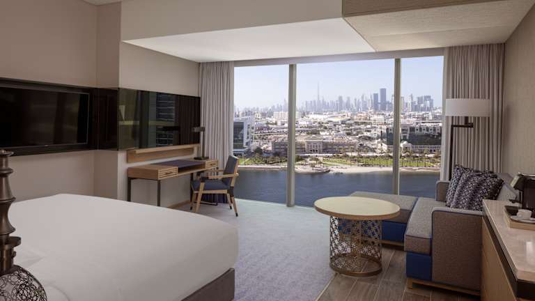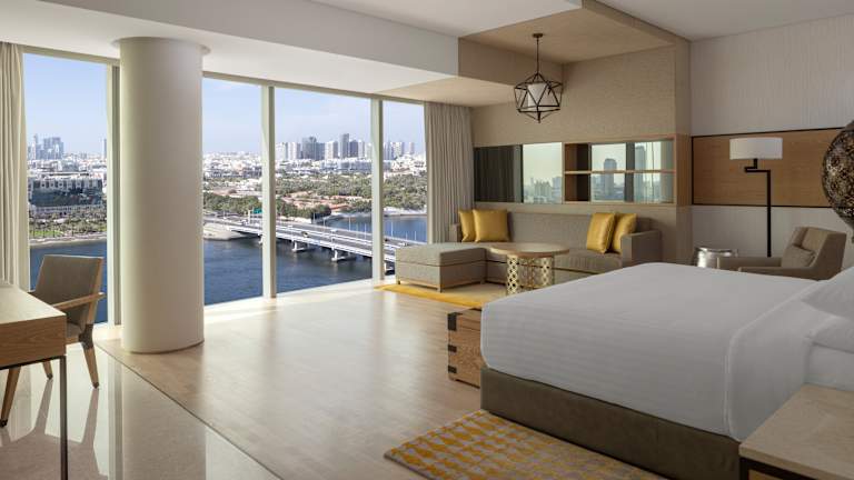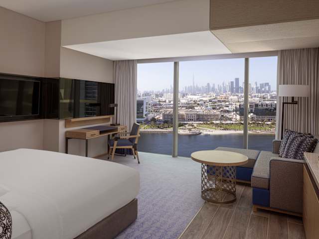 Entdecken Sie das neu eröffnete Marriott Marquis Dubai Creek– ein erstklassiges Hotel nahe dem Flughafen Dubai, gelegen im lebendigen Jewel of the Creek und nur wenige Minuten von Downtown entfernt. Unsere modernen Zimmer sind stilvoll gestaltet und bieten Komfort, großzügige Raumaufteilung sowie beeindruckende Ausblicke auf die Skyline oder den ruhigen Dubai Creek. Wählen Sie aus 15 Zimmerkategorien, darunter 1-, 2- und 3-Schlafzimmer-Apartments – ideal für Familien, Geschäftsreisende oder längere Aufenthalte – mit voll ausgestatteter Küche und modernen Annehmlichkeiten. Als geschätzter Gast genießen Sie exklusiven Zugang zu einem Konferenzbereich mit hochmodernen Meetingräumen, einem Fitnessstudio, Außenpool und einem erstklassigen Spa mit marokkanischem Hammam. Lassen Sie sich in unseren sechs Restaurants und Lounges kulinarisch verwöhnen. Buchen Sie jetzt und erleben Sie den perfekten Mix aus Stil, Komfort und Lage im Herzen von Dubai.