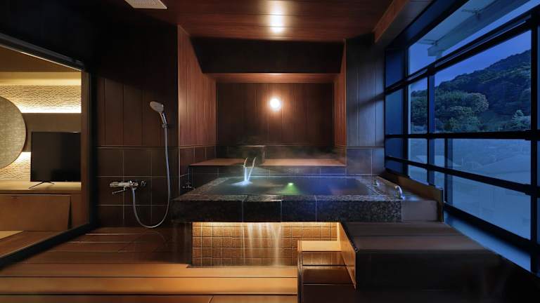 Das Hotel bietet verschiedene Freizeiteinrichtungen wie eine Sauna, Karaoke und einen Geschenkeladen. Sie können auch die öffentlichen Bäder mit Blick auf die Natur nutzen oder eine private heiße Quelle reservieren. Für zusätzlichen Komfort steht Ihnen eine Bar-Lounge zur Verfügung.
