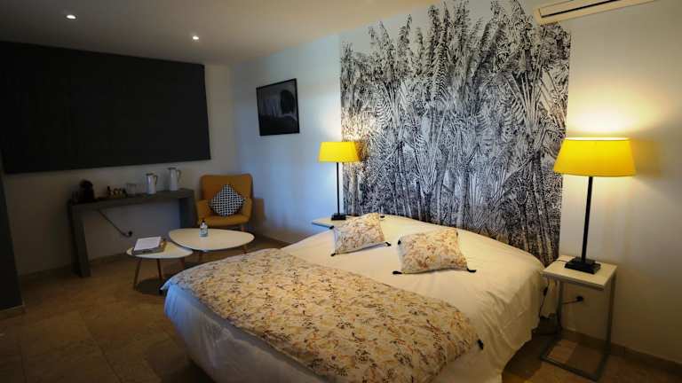 Mas Lou Caloun - Chambre d'Hôte ist eine Unterkunft mit saisonalem Außenpool, Garten und Terrasse. Die Räumlichkeiten sind mit kostenlosem WLAN ausgestattet und bieten einen Blick auf den Pool. Die Unterkunft verfügt über einen kostenlosen Privatparkplatz.