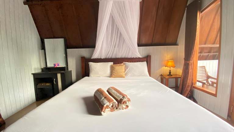 Matahari Bungalow 3 bietet Übernachtungsmöglichkeiten mit Blick auf den Strand und umfasst einen eigenen Strandbereich. Die Unterkunft verfügt über eine Terrasse und ein Restaurant sowie eine Bar. Kostenloses WLAN ist ebenfalls verfügbar, und ein kostenpflichtiger Flughafentransfer wird angeboten.