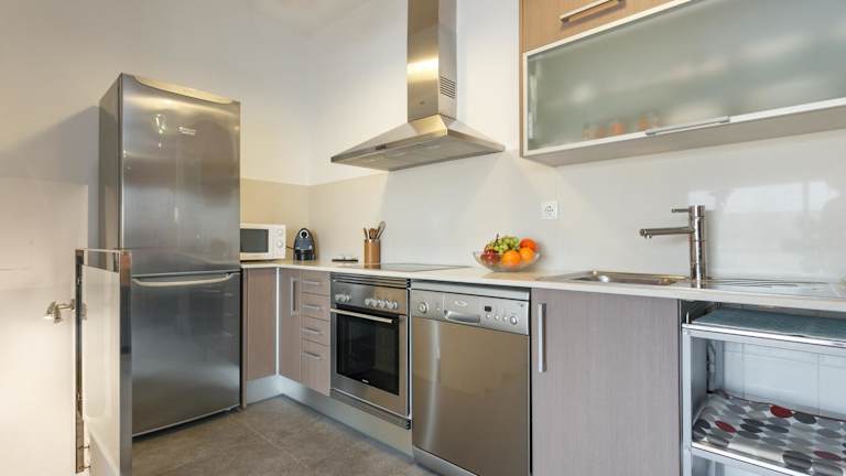 Das klimatisierte Apartment Matarolux bietet modernes Wohnen mit allen Annehmlichkeiten, die Sie benötigen. Das Wohnzimmer verfügt über Parkettboden, ein L-förmiges Schlafsofa und einen Flachbild-TV. Die geräumige Küchenzeile ist mit einem Esstisch, einem Kühlschrank, einem Backofen und einer Mikrowelle ausgestattet. Das Apartment verfügt über ein Doppelzimmer und ein Zweibettzimmer. Das Badezimmer ist mit einer Dusche und einem Haartrockner ausgestattet, und es gibt auch ein zusätzliches WC.