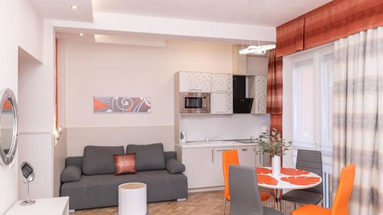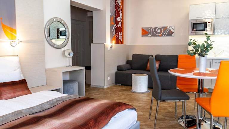 Die Wohnräume der Mátyás Apartmanok sind mit einer voll ausgestatteten Küche inklusive Kühlschrank, Geschirrspüler, Ofen und Wasserkocher ausgestattet. Die Wohneinheiten verfügen über einen Esstisch, einen Flachbild-TV mit Satellitenkanälen und ein eigenes Badezimmer mit Dusche, kostenlosen Pflegeprodukten und Haartrockner. Bettwäsche und Handtücher werden gemäß den Richtlinien der örtlichen Behörden gewaschen.