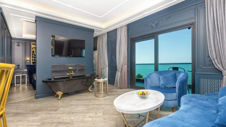 Das MAVİ MARİN BOUTIQUE HOTEL in Ordu ist eine ideale Unterkunft für einen entspannten und komfortablen Aufenthalt. Mit einem schönen Garten, einer gemütlichen Gemeinschaftslounge und einer Terrasse bietet das Hotel eine angenehme Atmosphäre. Das Restaurant und die Bar verwöhnen die Gäste mit köstlichen Speisen und erfrischenden Getränken. Der private Strandbereich lädt zum Sonnenbaden und Entspannen ein. Das freundliche Personal steht Ihnen rund um die Uhr zur Verfügung und das kostenfreie WLAN sorgt dafür, dass Sie immer online bleiben können. Die klimatisierten Zimmer sind komfortabel eingerichtet und verfügen über moderne Annehmlichkeiten. Starten Sie Ihren Tag mit einem leckeren Frühstück und erkunden Sie die Umgebung, denn der Flughafen Samsun ist nur 63 km entfernt. A