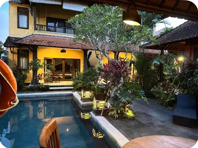 Das Mawa House in Ubud bietet seinen Gästen ein gemütliches und entspanntes Ambiente inmitten der Natur. Mit 8 Zimmern ist das Hotel klein und familiär. Der freundliche Service an der Rezeption steht den Gästen bei allen Anliegen zur Verfügung. WLAN ist im gesamten Hotel kostenfrei verfügbar. Der Außenpool lädt zum Erfrischen ein und auf der Terrasse können die Gäste das schöne Wetter genießen. Für zusätzliche Entspannungsmöglichkeiten steht ein Wellnessbereich zur Verfügung. Jeden Morgen wird ein nahrhaftes Frühstück serviert. Das Hotel bietet auch einen Babysitterservice für Familien.