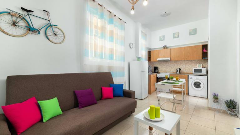 Maximos Sea & The City bietet einen Blick auf den Garten und verfügt über komfortable Übernachtungsmöglichkeiten, die einen Balkon und einen Wasserkocher beinhalten. Es stehen den Gästen ein Garten, eine Terrasse sowie kostenloses WLAN in der gesamten Unterkunft zur Verfügung.